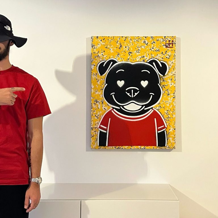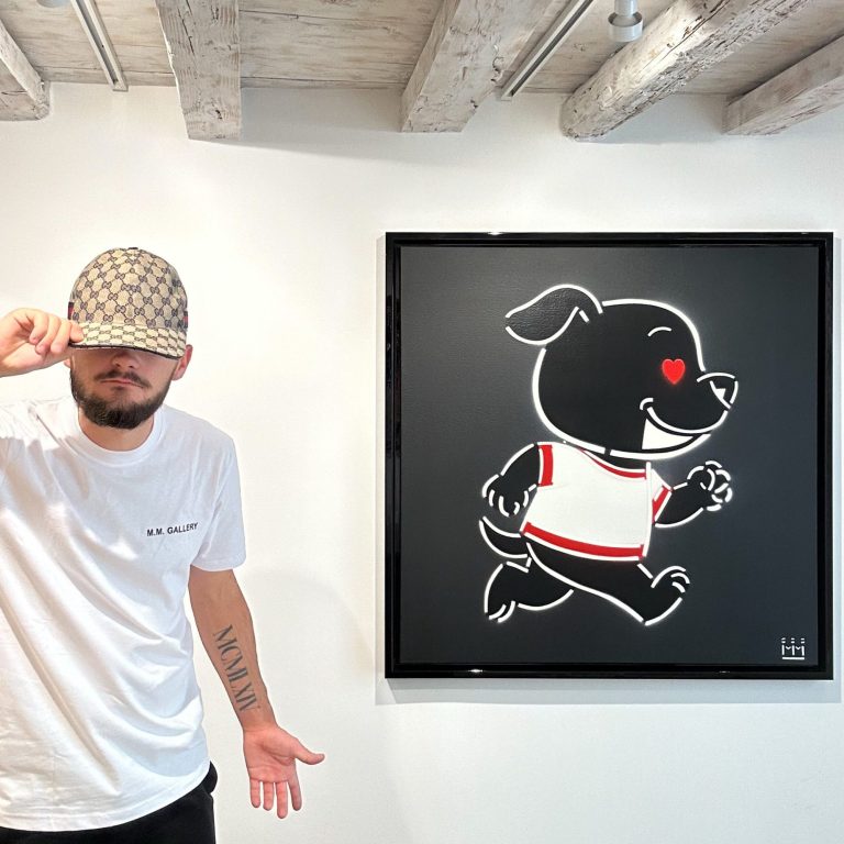 " Après toutes ces années dans l'ombre de l'atelier, Mila occupe enfin la place qu'elle mérite. Sans ce chien incroyable à mes côtés, rien de tout cela n'aurait été possible. Elle est un symbole de pureté, d'altruisme, de joie de vivre et de loyauté, etc. C'est pourquoi elle devient aujourd'hui le personnage principal de mon art."